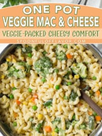 This one pot vegetable mac and cheese is loaded with cheesy goodness, full of fresh vegetables, and ready in just 25 minutes. A creamy comfort food win for both kids and adults!